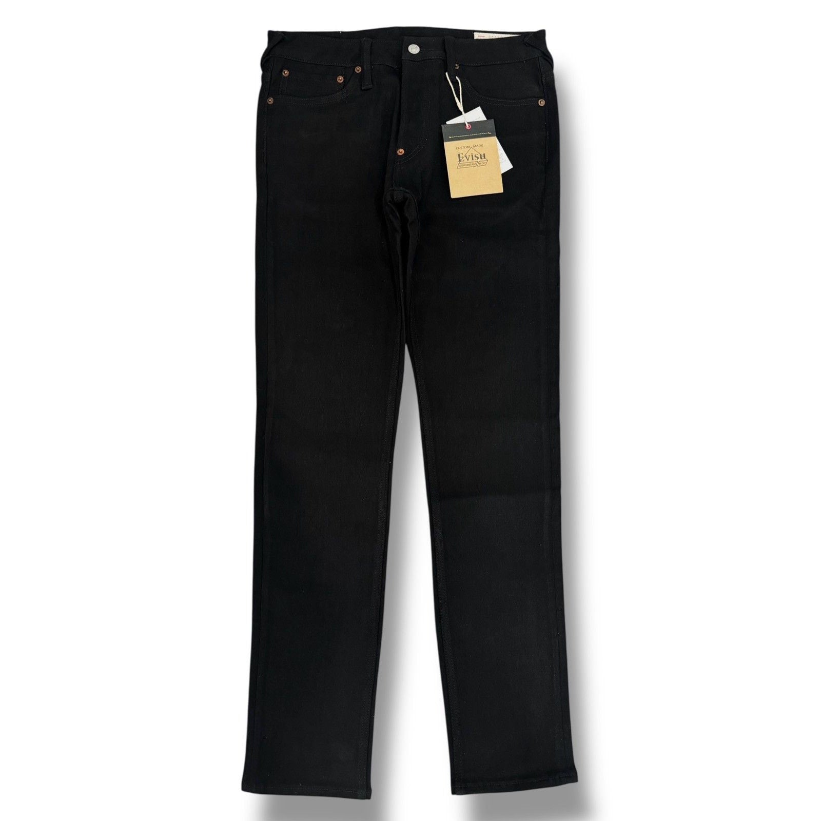 An encounter of traditional Japanese culture and street style: EVISU's carrot-fit jeans are emblazoned with a back brushstroke Daicock in brocade Kamon and waves pattern foil print.